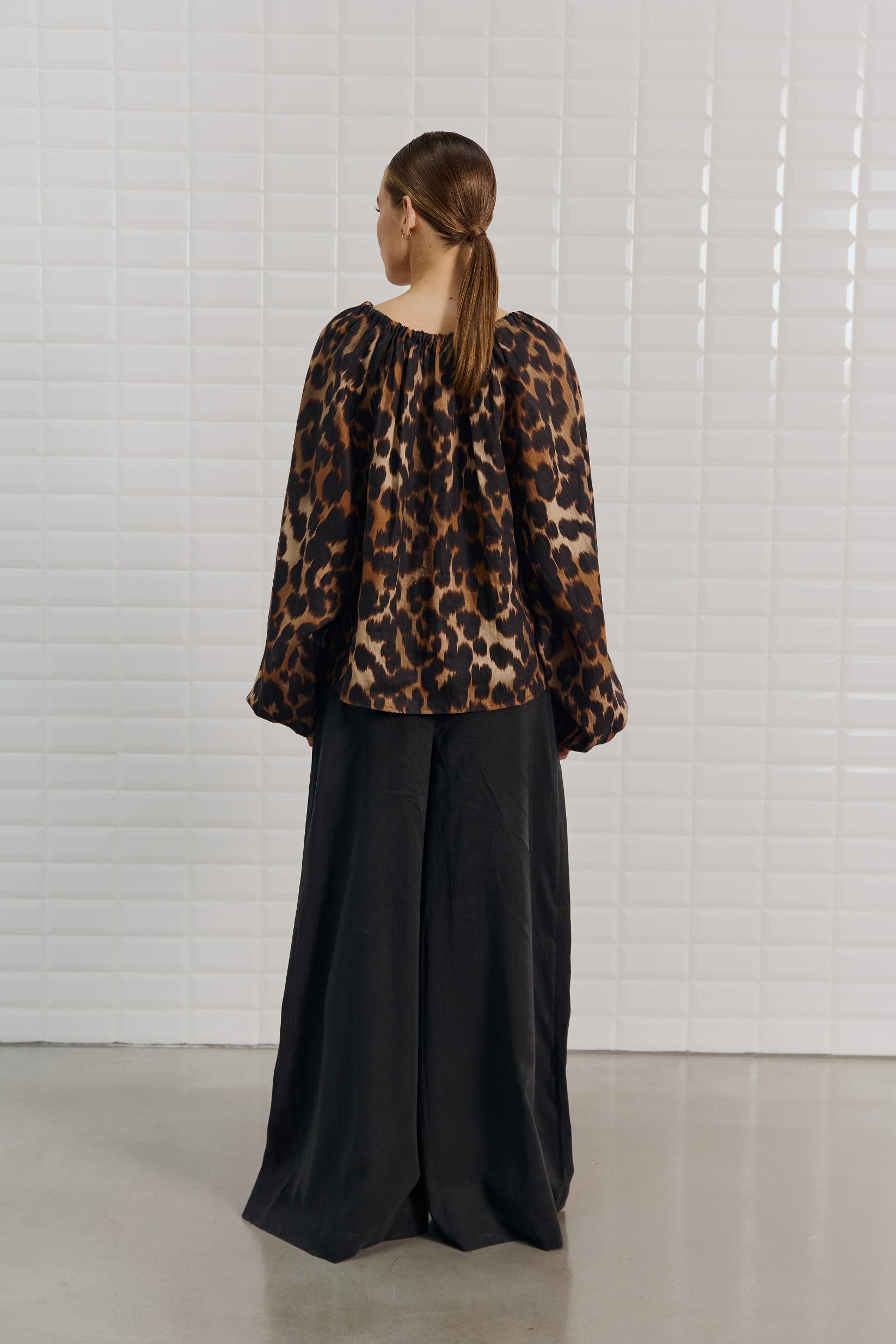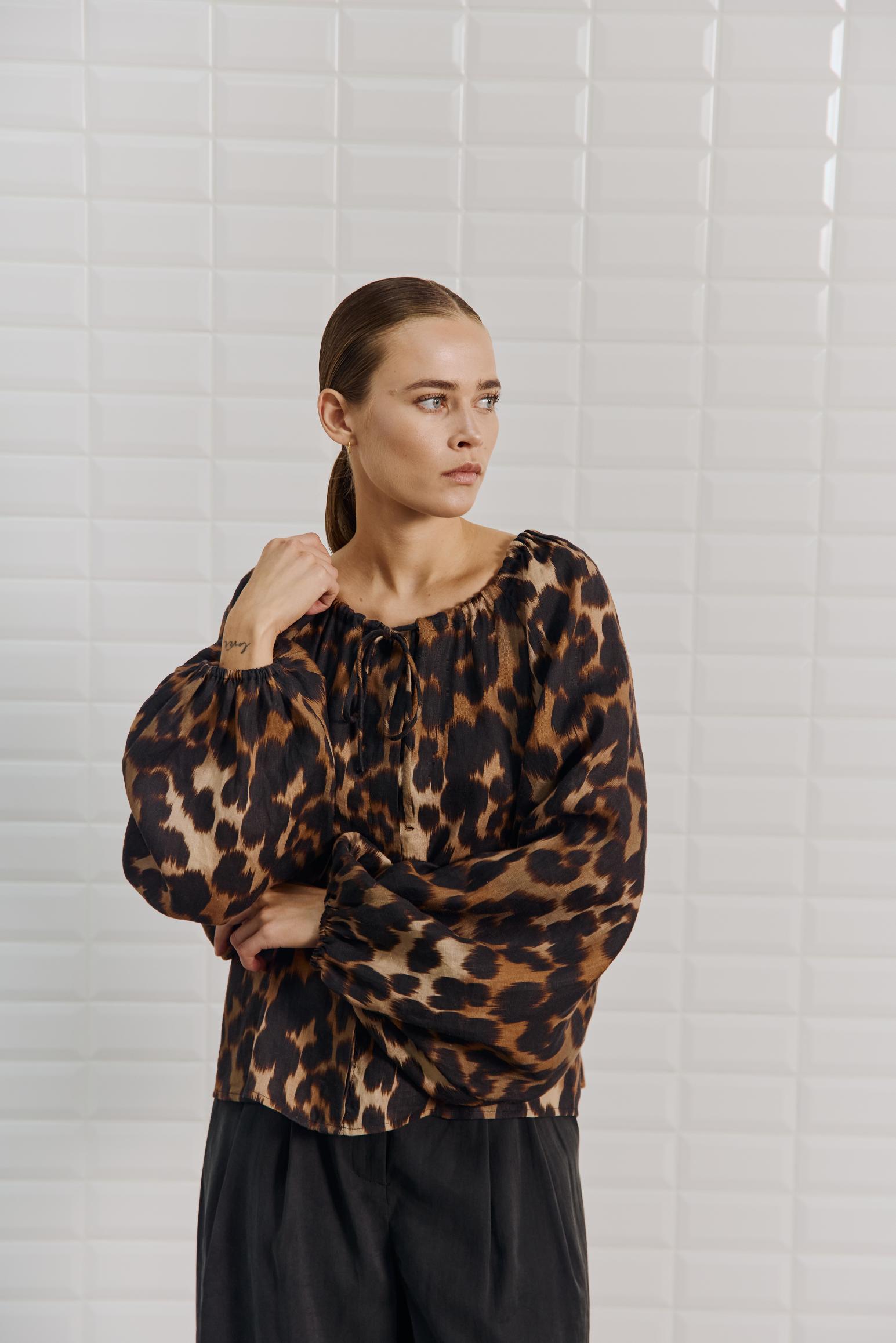 With Black - WBLCLEOPATRA Wide sleeve top Leo Print- 00001601